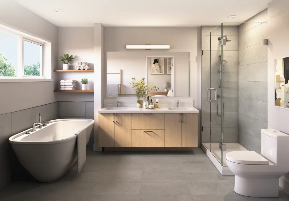 Every Wildwood residence is designed with flexibility in mind, offering layouts that adapt to a variety of lifestyles. Whether creating a home office, welcoming guests, or accommodating family needs, these four-bedroom, three-bathroom townhomes provide the space to shape life your way. Comfort comes standard with built-in climate control, while interiors feature quartz countertops, under-mount sinks, seamless showers, heated ensuite floors, wide-plank flooring, and a full stainless-steel appliance package with gas range. Overheight ceilings in living areas and bedrooms further enhance the sense of space, and each home includes parking for two vehicles with an EV-ready garage.